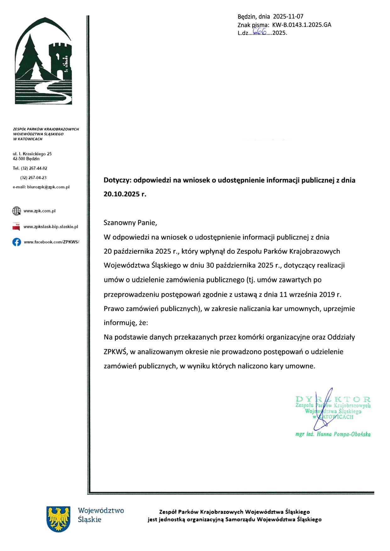 NIP: 6292147775REGON: 276711980Strona internetowa Województwa Śląskiego: slaskie.pl
